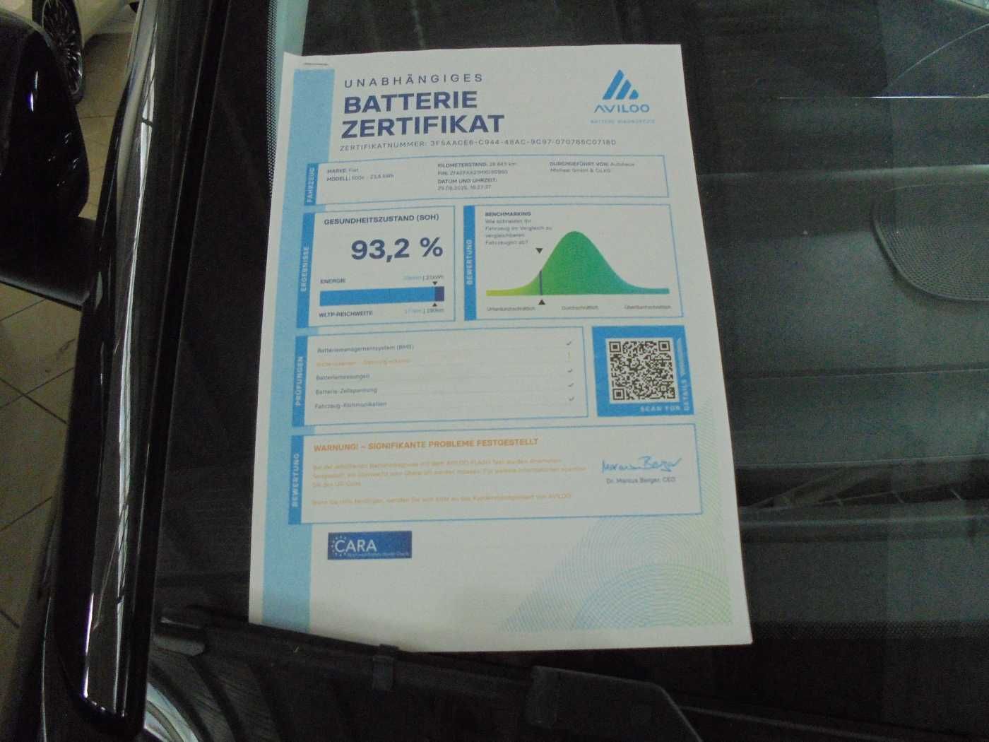 • Das Fahrzeug verfügt über ein Batterie Zertifikat. Für weitere Informationen nehmen Sie bitte direkten Kontakt auf.
