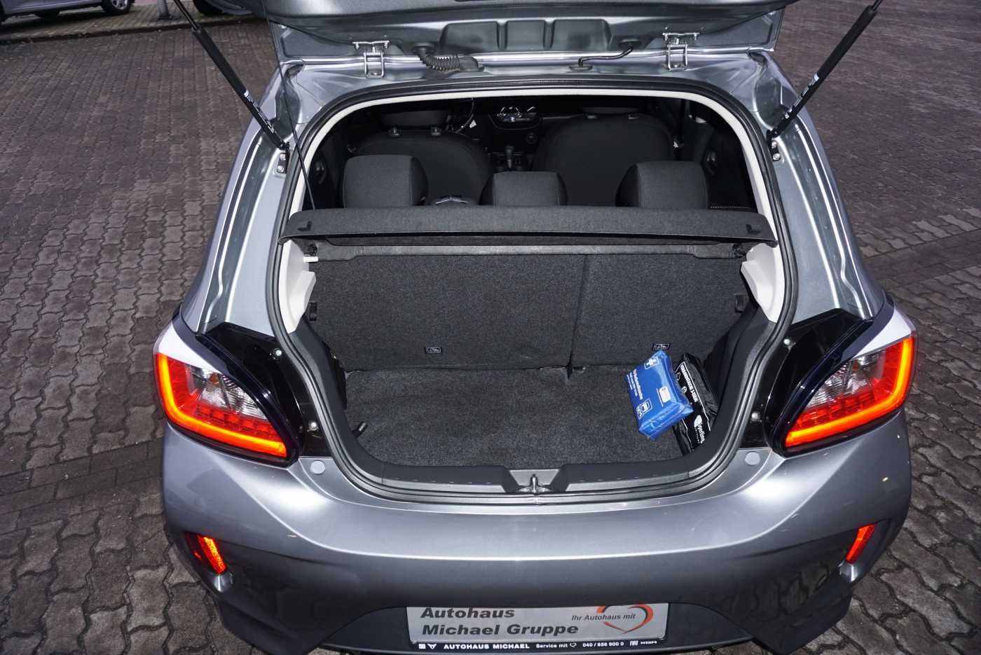 Serienausstattung3. Bremsleuchte (18900)4 Lautsprecher (24608)Airbag Beifahrerseite abschaltbar (26910)Airbag Fahrer-/Beifahrerseite (26803)Anti-Blockier-System (ABS) (40000)Außenspiegel elektr. verstell- und heizbar (15200)Außenspiegel Wagenfarbe (15807)B-Säulen schwarz (20337)Bluetooth-/Audio-Schnittstelle (25040)Dachantenne (14700)Dachspoiler mit 3. Bremsleuchte (20909)Dachspoiler Wagenfarbe (21003)Drehzahlmesser (25300)Elektr. Bremskraftverteilung (40307)Elektron. Stabilitäts- und Traktionskontrolle (MASC + MATC) (70102)Fahrassistenz-System: Berganfahrhilfe (70603)Fahrassistenz-System: Notbrems-Assistent (40801)Fahrer-Informations-System (FIS) mit Farbdisplay (25809)Fensterheber elektrisch vorn + hinten (35003)Fernentriegelung Tankklappe (35501)Freisprecheinrichtung Bluetooth (24808)Gepäckraumbeleuchtung (37805)Geschwindigkeits-Regelanlage (Tempomat) (26708)Getriebe Automatik - INVECS III CVT (6-Stufen) (75718)Getränkehalter vorn und hinten (39402)Gurtstraffer vorn (37301)Heckleuchten LED (18802)Heckscheibe heizbar (22800)Heckscheibenwischer (19300)Innen-/ Außentemperaturanzeige (25703)Innenausstattung: Cockpitverkleidung in Klavierlack-Optik (26161)Innenausstattung: Cockpitverkleidung mit Akzenten, Silberfarben (26154)Innenraumfilter: Pollenfilter (29200)Innenspiegel abblendbar (37900)Isofix-Aufnahmen für Kindersitz (39307)Karosserie: 5-türig (10005)Kindersicherung (35704)Klimaanlage (28900)Kopf-Airbag-System hinten (26805)Kopf-Airbag-System vorn (26804)Kopfstützen vorn (34801)Laderaumabdeckung (27402)Lenkrad (Leder) mit Multifunktion (69007)Lenksäule (Lenkrad) höhenverstellbar (69503)Liegesitz-Funktion, Sitze vorn (33230)LM-Felgen 5x15 (45711)Luftdüsen im Fond (29393)Mittelkonsole mit Ablagefach (27020)Modellpflege (2) (251)Motor 1,2 Ltr. - 52 kW (81400)Multifunktionsanzeige (25602)Nebelschlussleuchte (18700)Notbrems-Warnblinkautomatik (ESS) (18898)Radioempfang digital (DAB+) (24052)Regen-/Lichtsensor (19309)Reifen-Reparaturkit (68802)Reifendruck-Kontrollsystem (25903)Rückfahrkamera (39805 Rücksitz geteilt / klappbar (33603)Schadstoffarm nach Abgasnorm Euro 6d (77274)Scheibenwischer mit Intervallschaltung, regulierbar (19009)Scheinwerfer Klarglas (18509)Seitenairbag vorn (26903)Seitenaufprallschutz (36700)Servolenkung (69800)Sicherheitsgurte höhenverstellbar (37003)Sitz vorn links höhenverstellbar (32704)Sitz vorn rechts höhenverstellbar (32702)Sitzausstattung: 5-Sitzer (34106)Sitzbezug / Polsterung: Stoff (30500)Sitzheizung vorn (29500)SmartphoneLink Display Audio II (SDA II) (25650)Smartphone Schnittstelle (Apple CarPlay & Android Auto), TouchscreenFarbdisplay (7,0 Zoll)Start/Stop-Anlage (ASG) (77601)Steckdose (12V-Anschluß) in Mittelarmlehne / Mittelkonsole (39010)Stoßfänger Wagenfarbe (21300)Tagfahrlicht (18904)Türgriffe außen Wagenfarbe (36404)Türgriffe innen verchromt (35206)USB-/Audio-Schnittstelle (25010)Verglasung hinten abgedunkelt (22202)Wegfahrsperre (38105)Wärmeschutzverglasung getönt (22302)Zentralverriegelung mit Fernbedienung (35301 Sonderausstattung: metallic Lackierung Ganzjahresreifen Gerne steht ihnen unser Verkaufsberater Herr Torsten Kruska 040 / 656 900 - 19 in der Zeit von 09.00 bis 18.00 Uhr für weitere Fragen zu diesem Fahrzeug zur Verfügung. Finanzierungen auch ohne Anzahlung möglich. Gerne nehmen wir Ihren Gebrauchten in Zahlung. (Druckfehler , Irrtümer und Zwischenverkauf vorbehalten) Probefahrten nur nach vorheriger Absprache. Alle Angaben ohne Gewähr * Weitere Informationen zum offiziellen Kraftstoffverbrauch und zu den offiziellen spezifischen CO2-Emissionen und gegebenenfalls zum Stromverbrauch neuer PKW können dem Leitfaden über den offiziellen Kraftstoffverbrauch, die offiziellen spezifischen CO2-Emissionen und den offiziellen Stromverbrauch neuer PKW' entnommen werden, der an allen Verkaufsstellen und bei der 'Deutschen Automobil Treuhand GmbH' unentgeltlich erhältlich ist unter www.dat.de.